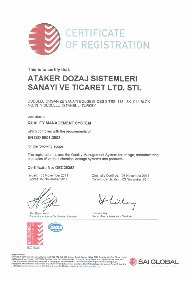 On November 3, 2011, we renewed our ISO 9001 Certificate once again.