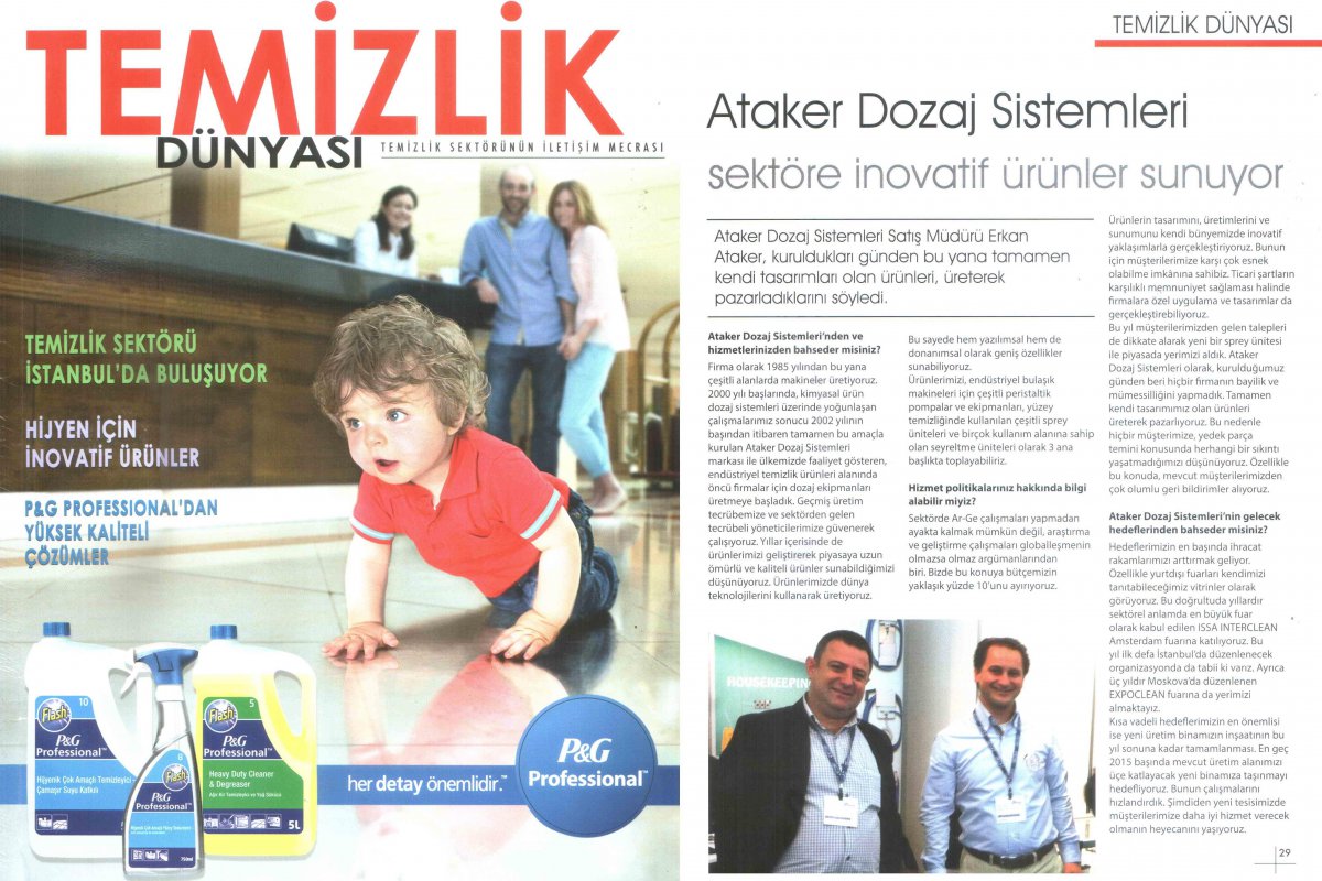 "TEMİZLİK DÜNYASI" published "ATAKER Dosing Systems" news. September 2014