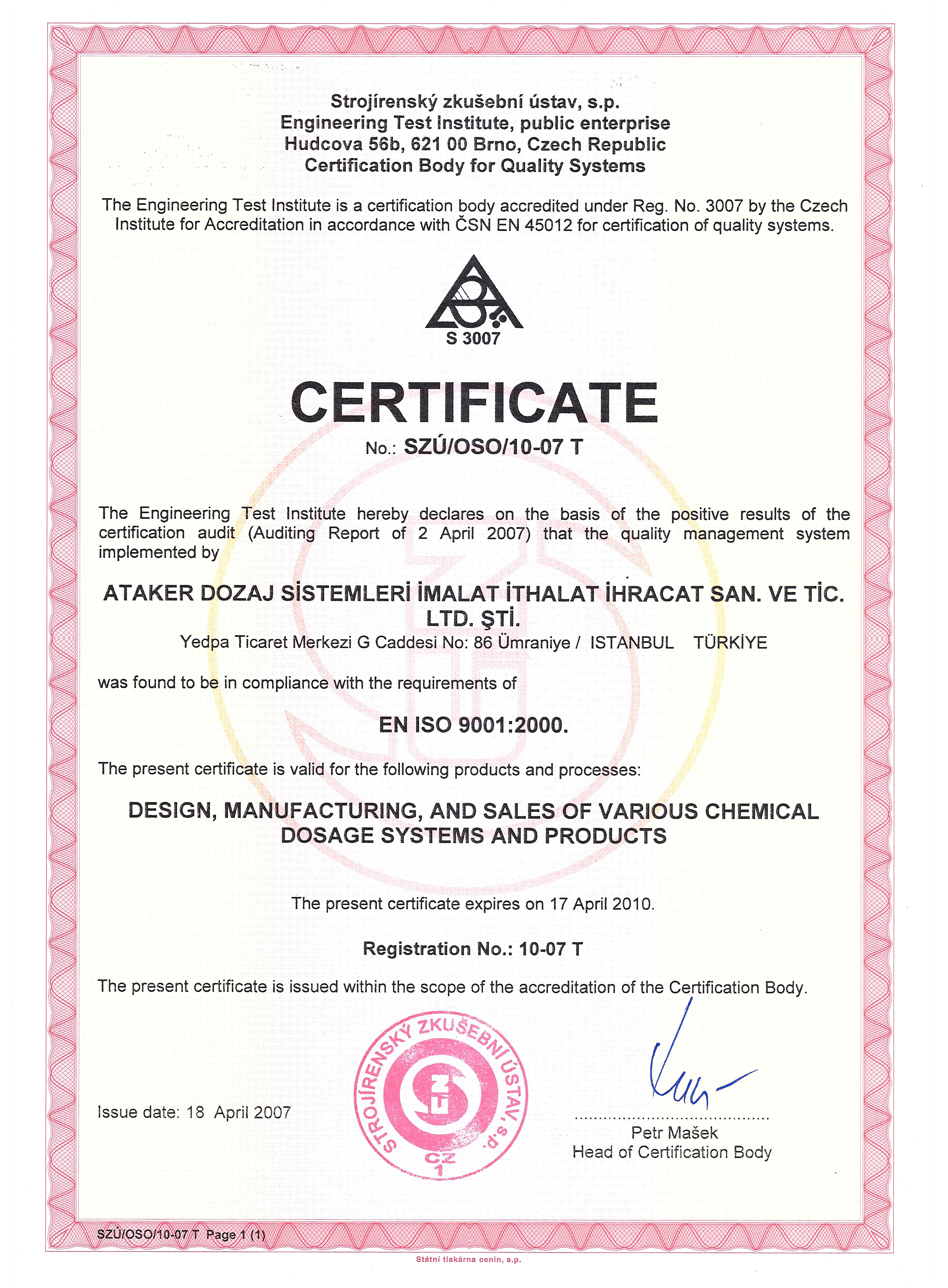 2002 yılının başından itibaren ise, tamamen bu amaçla kurulan Ataker Dozaj Sistemleri Tic. ve San. Ltd. Şti. adı altında faaliyetlerini sürdürmeye devam etmektedir.