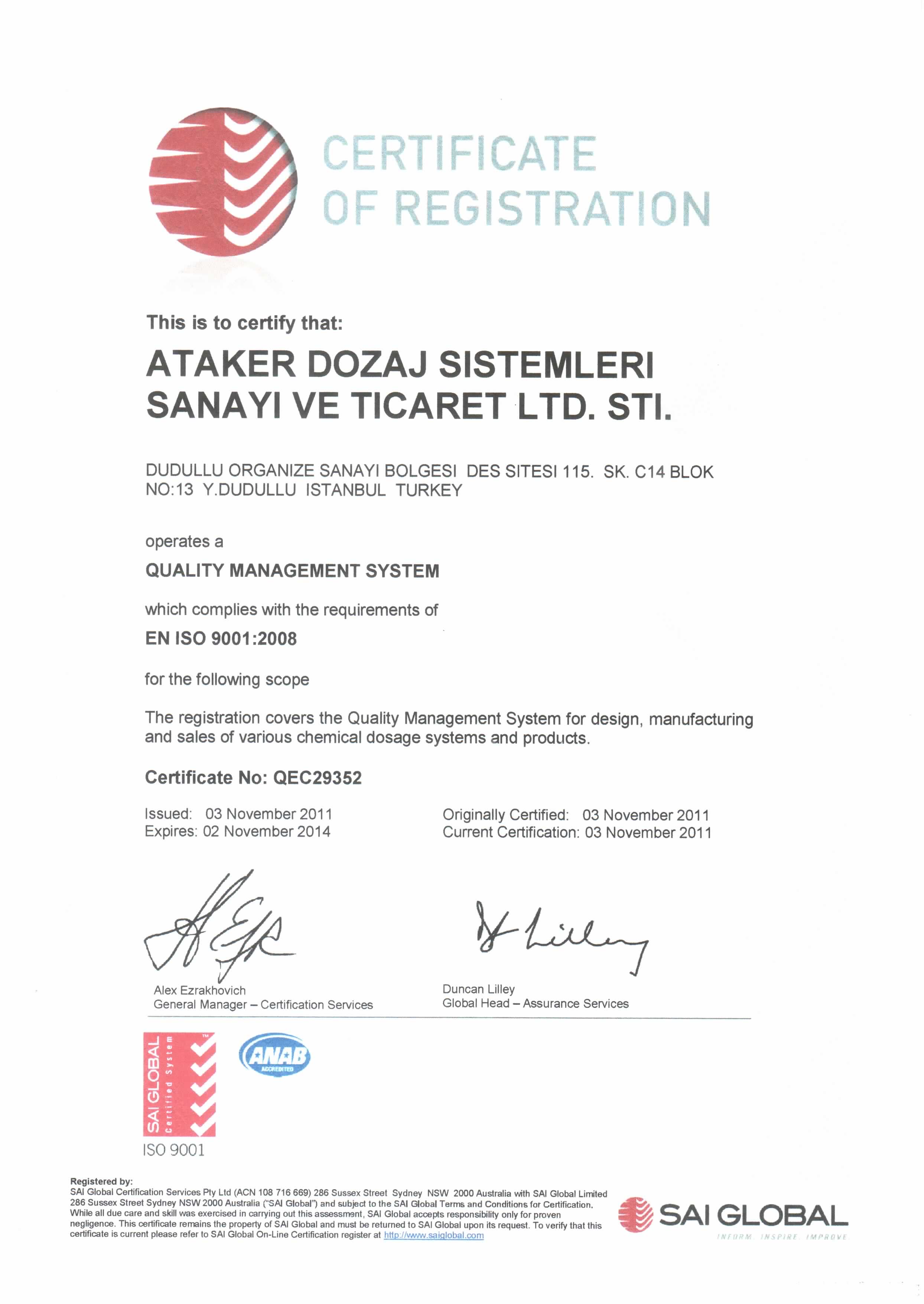 Ataker Dozaj Sistemleri bu güne kadar olduğu gibi, gelecekte de müşteri memnuniyeti odaklı, dürüst ticaret kurallarını ilke edinmiş bir şirket kimliği ile müşterilerinin talep ve ihtiyaçlarını karşılamak için çalışmalarını sürdürecektir.