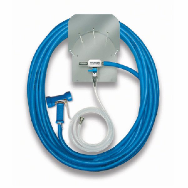 - Paslanmaz çelik malzemeden imal edilmiş dayanıklı hortum asma aparatı.